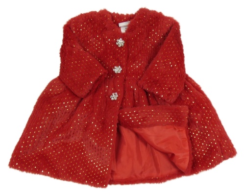 Červený chlupatý podšitý kabátek s puntíky Blueberi