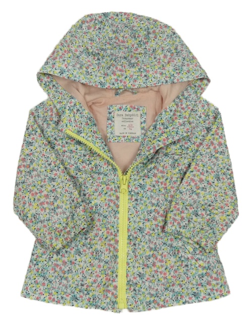 Bílo-zelená květovaná šusťáková jarní bunda s kapucí Zara