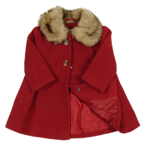 Červený flaušový podšitý kabát s kožešinovým límečkem F&F