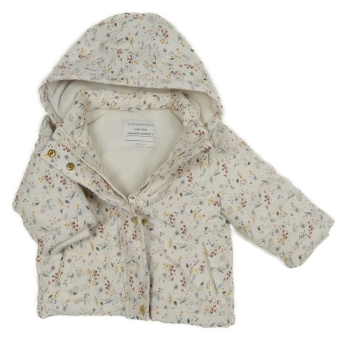 Bílá květovaná šusťáková zateplená bunda s kapucí Primark