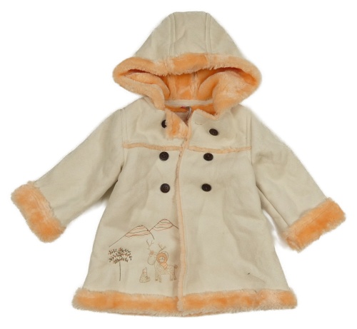 Béžovo-oranžový zateplený semišový kabátek s dívkou a kapucí Orchestra
