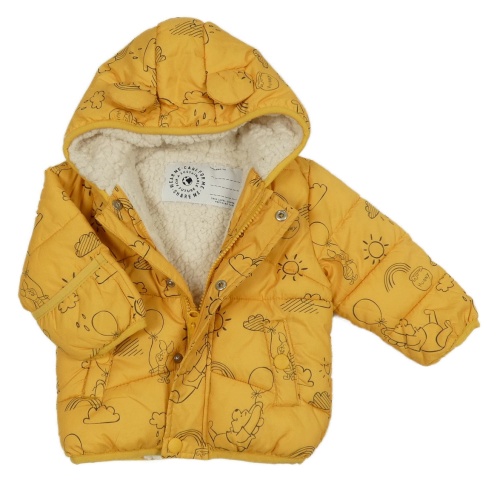 • Žlutá prošívaná šusťáková přechodová bunda s Pú a kapucí s oušky George