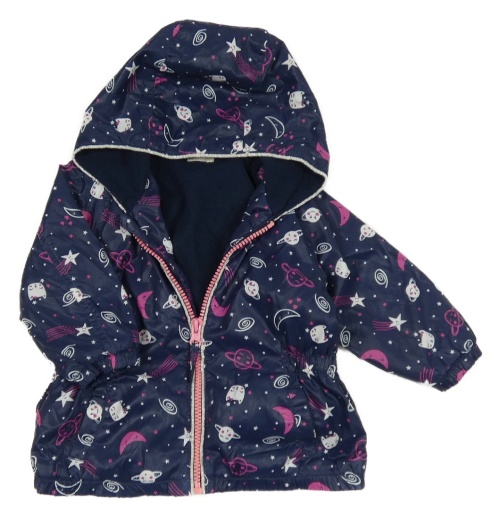 Tmavomodrá šusťáková jarní bunda s obrázky a kapucí Benetton