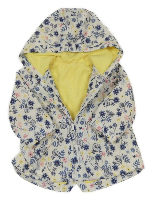 Bílo-modrá květovaná šusťáková jarní parka s kapucí