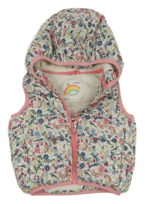 Bílo-barevná šusťáková zateplená vesta s kapucí Next