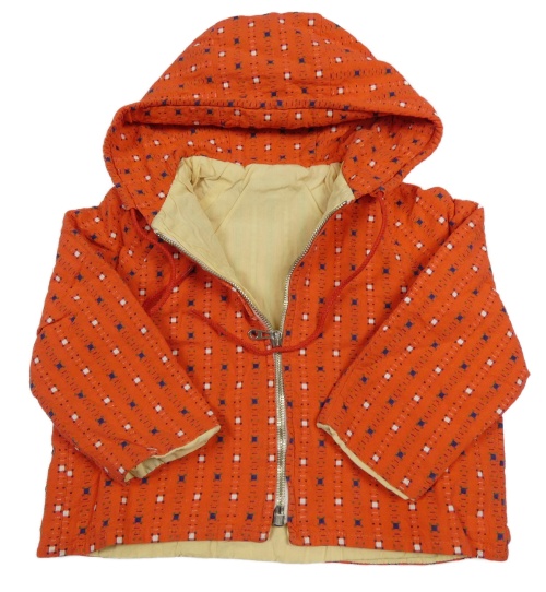 Červená vzorovaná plátěná jarní bunda s kapucí