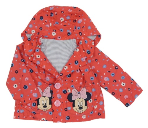 Jahodová šusťáková jarní bunda s Minnie a květy a kapucí George