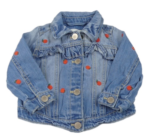 Světlemodrá riflová bunda s jablíčky a volánky Next
