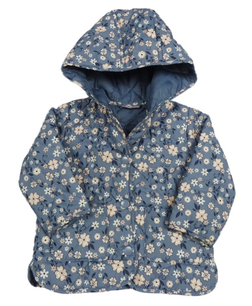Modro-šedá květovaná šusťáková prošívaná zateplená bunda s kapucí