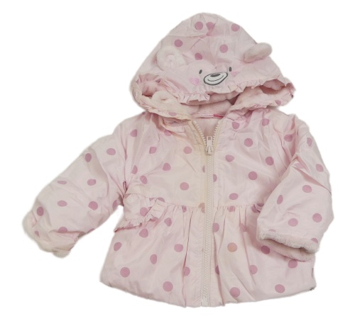 Světlerůžová puntíkatá šusťáková zateplená bunda s kapucí
