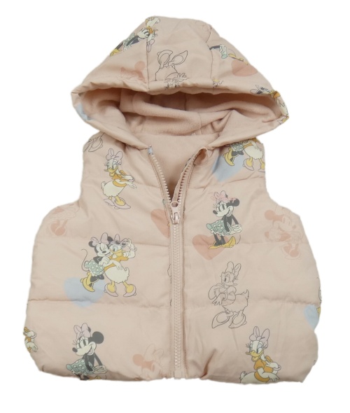 Světlerůžová šusťáková zateplená vesta s Minnie a Daisy a kapucí Disney