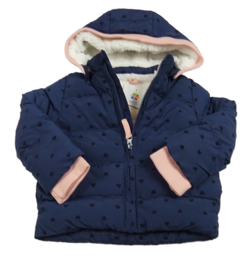 Tmavomodrá šusťáková prošívaná zimní bunda se srdíčky a odepínací kapucí Topolino