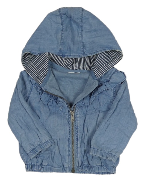 Modrá riflová podzimní bunda s volánky a kapucí Next