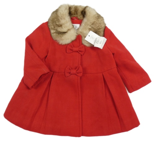 Nový - červený flaušový podšitý kabát s kožešinovým límečkem F&F
