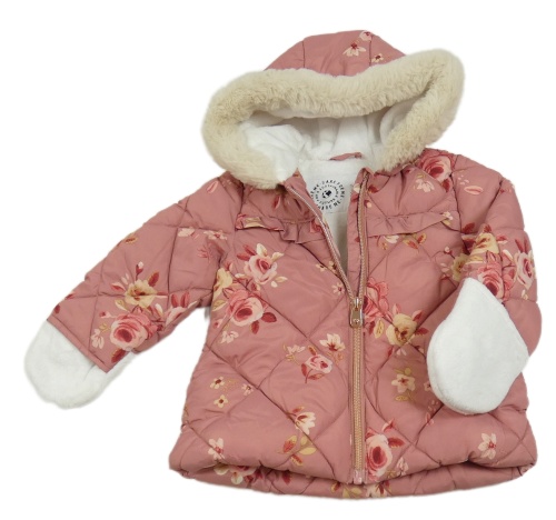 Starorůžová prošívaná květovaná šusťáková zimní bunda s kapucí George