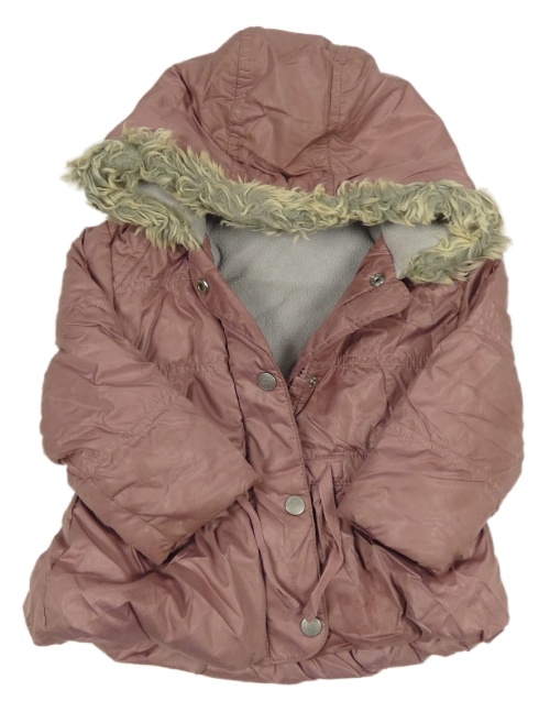 Starorůžová prošívaná šusťáková zimní parka s kapucí s kožešinou Next