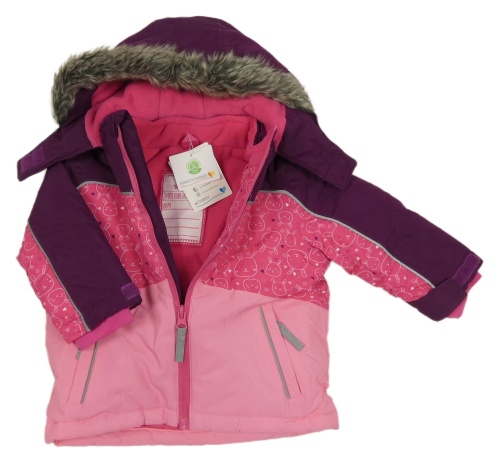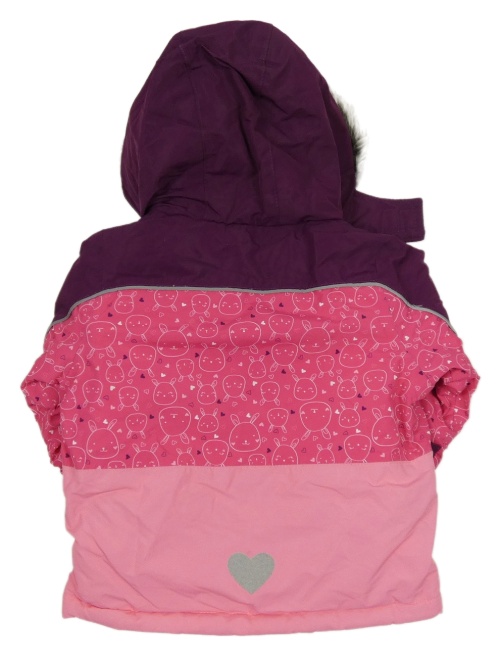 Nové - Fialovo-růžová šusťáková zimní bunda se zajíčky a kapucí Topomini