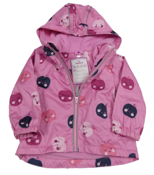 Růžová šusťáková podzimní bunda s jablíčky a kapucí Topomini