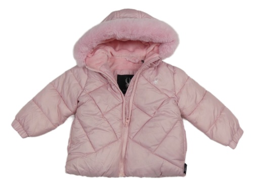 Světlerůžová prošívaná šusťáková zimní bunda s pavoukem a kapucí s kožešinou SPYDER