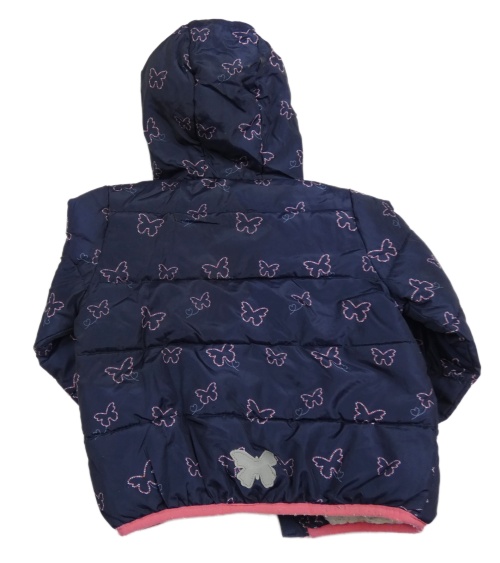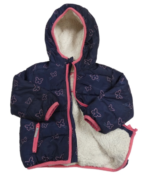 Tmavomodrá prošívaná šusťáková zimní bunda s motýlky a kapucí Topomini