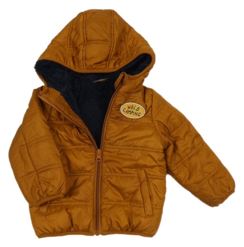 • Hnědá šusťáková prošívaná zimní bunda s nápisem a kapucí zn So Cute