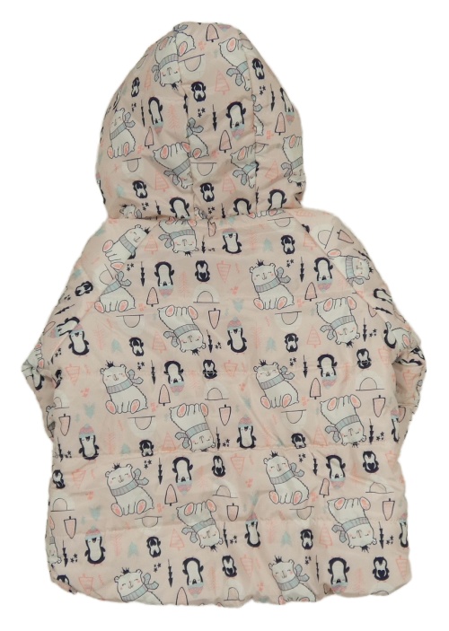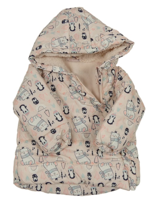 Světlerůžová šusťáková zimní bunda se zvířaty a kapucí