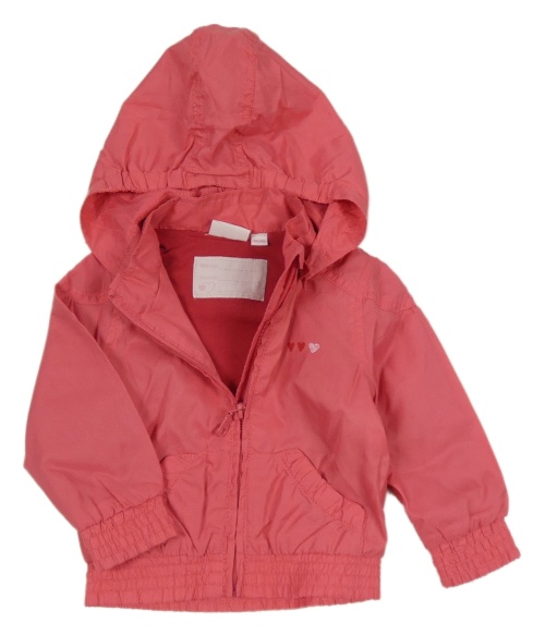 Jahodová šusťáková podzimní bunda se srdíčky a odepínací kapucí impidimpi