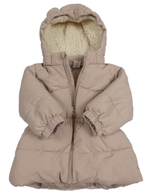 Pudrová prošívaná šusťáková zimní parka s odepínací kapucí s oušky H&M