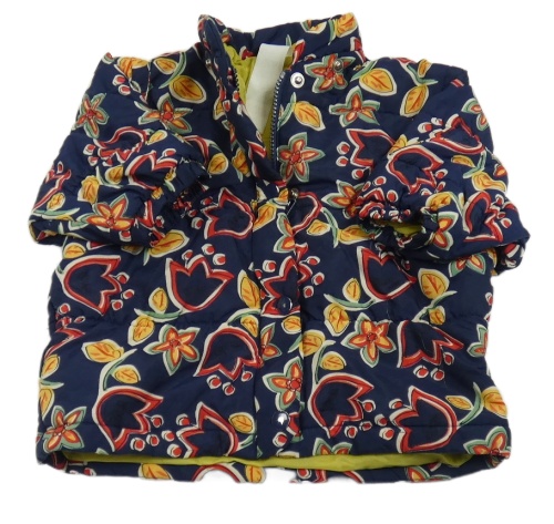 Tmavomodrá šusťáková zateplená bunda s tulipánky