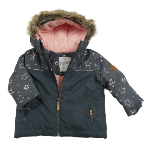 Tmavošedá šusťáková zimní bunda s hvězdičkami a kapucí Topomini