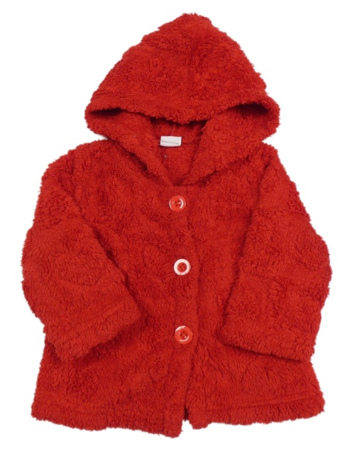 Červený chlupatý kabátek s kapucí