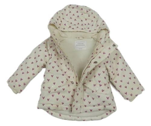 Smetanová šusťáková zimní parka se srdíčky a kapucí Primark