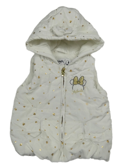 Bílá šusťáková zateplená vesta s Minnie a kapucí Disney
