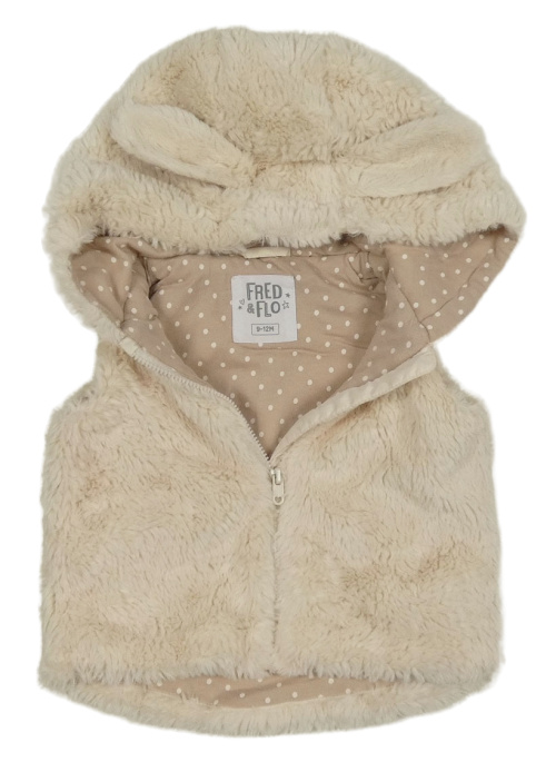 Smetanová kožešinová podšitá vesta s kapucí s oušky F&F
