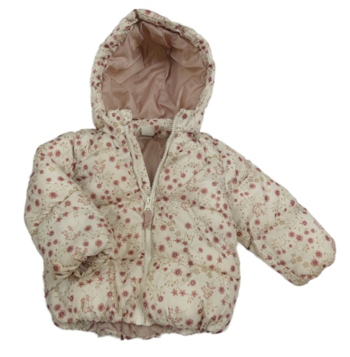 Smetanová květovaná šusťáková zimní bunda s odepínací kapucí H&M