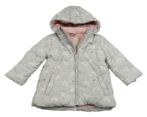 Šedá šusťáková zimní parka s liškami a kapucí Topolino