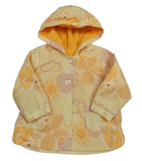 Světležlutá šusťáková jarní bunda s květy a sluníčky a kapucí Nutmeg