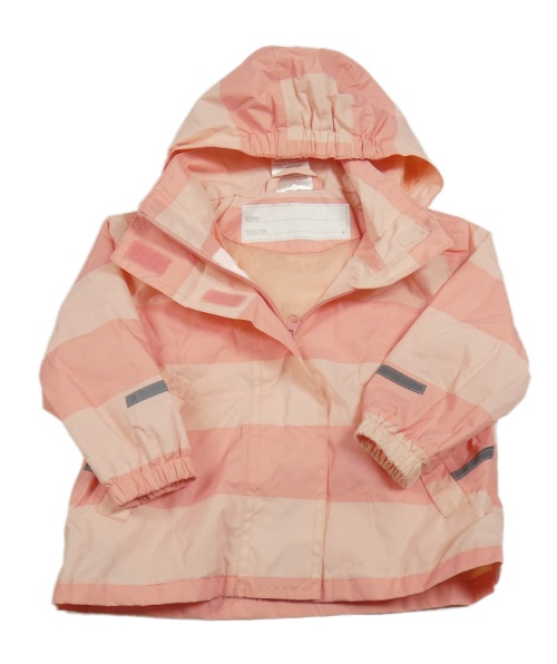Korálovo-světlebroskvová pruhovaná šusťáková jarní bunda s ukrývací kapucí impidimpi