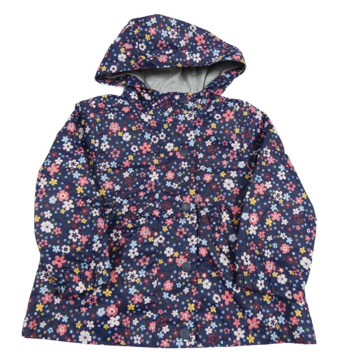 Tmavomodrá květinová šusťáková jarní bunda s kapucí Topomini