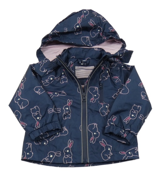 Tmavomodrá šusťáková jarní bunda s králíky a kapucí Pocopiano