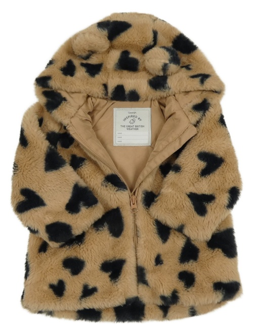 Hnědá kožešinová podšitá bunda se srdíčky a kapucí George