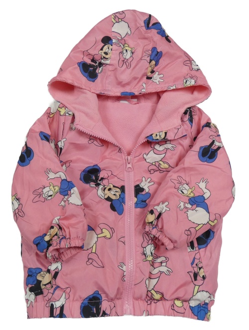 Růžová šusťáková jarní bunda s Minnie a Daisy a kapucí Disney