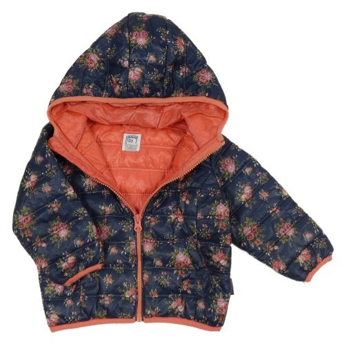 Tmavomodrá květinová šusťáková prošívaná zateplená bunda s kapucí Chicco