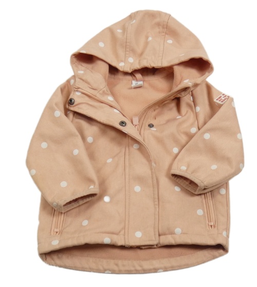 Broskvová softshellová jarní bunda s puntíky a kapucí Topolino