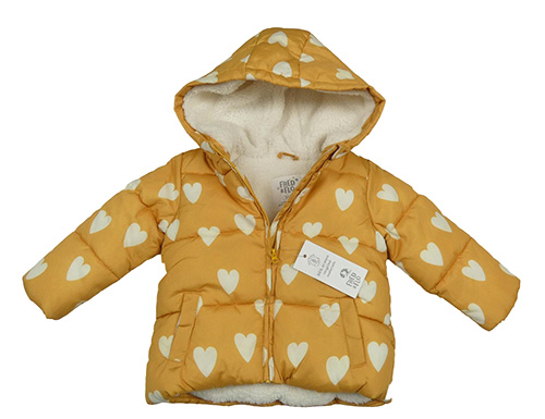 Nové - hořčicová zimní bunda se srdíčky a kapucí F&F