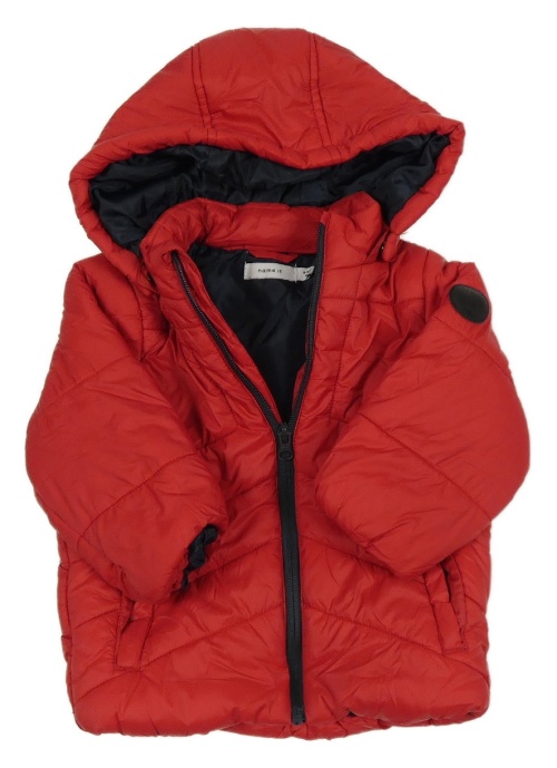 Červená šusťáková prošívaná zimní bunda s kapucí Name it