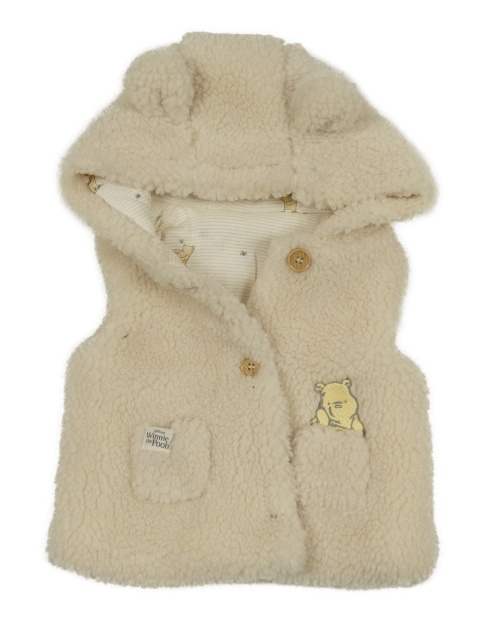 Béžová huňatá zateplená vesta s Púem a kapucí Tu