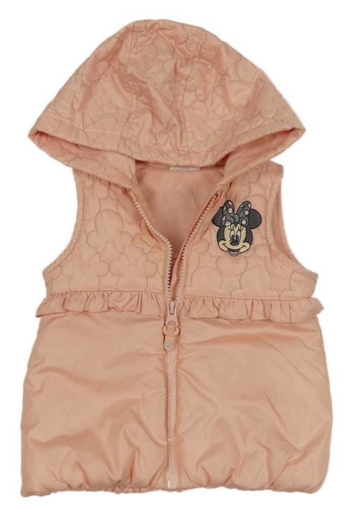 Růžová šusťáková zateplená vesta s Minnie a kapucí Disney