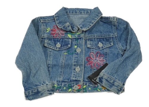 Nové - modrá riflová bunda s květy a límečkem ST.