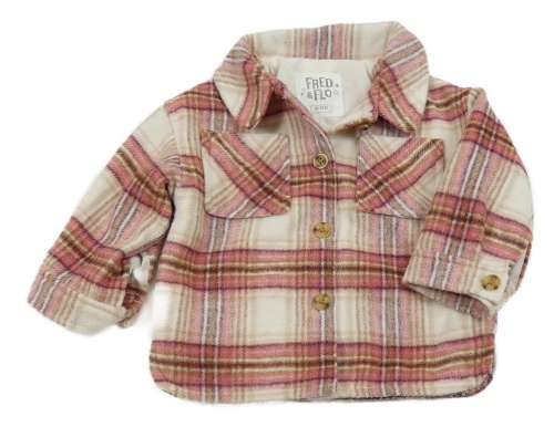 Růžovo-smetanová kostkovaná vlněná podšitá košilová bunda F&F